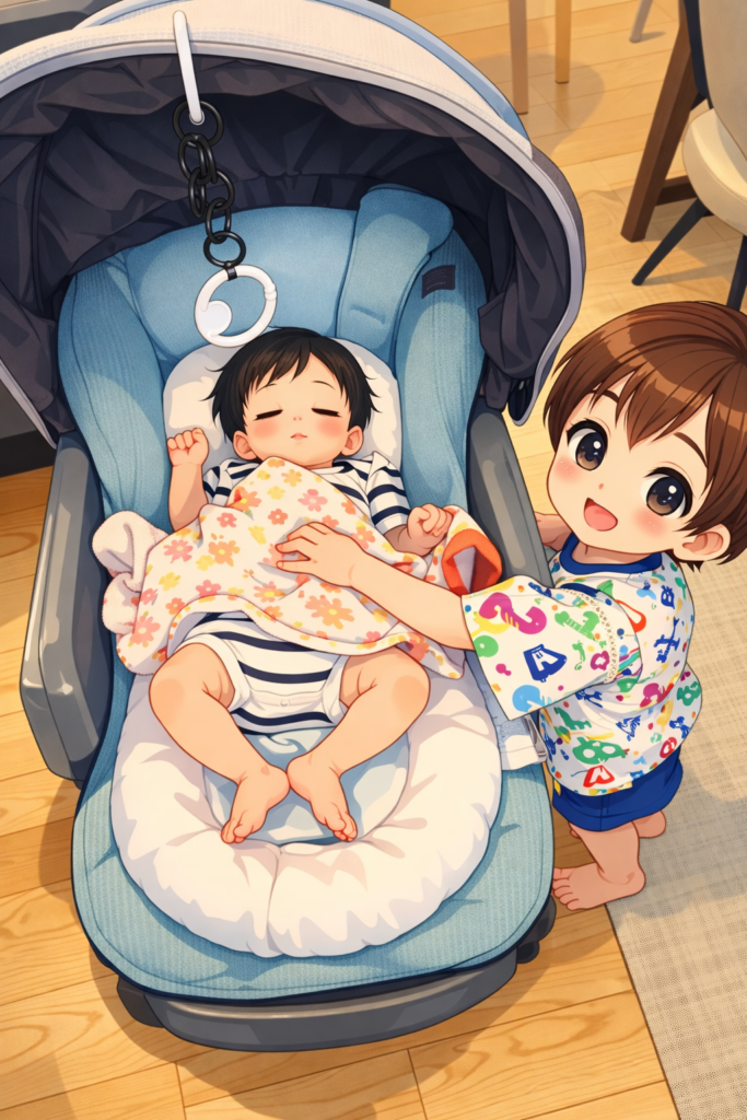 胎内環境に近づけるって赤ちゃんの安眠には大切なんだ。」